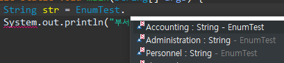 ① 11행: 클래스명.을 치면 enum 변수들만 출력됨