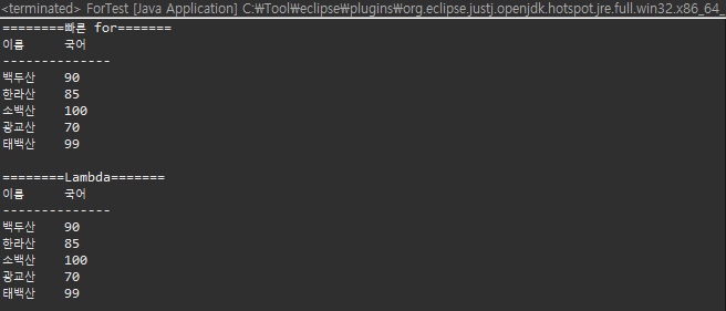 ex) 위의 매개변수 예제 람다식으로 출력하기